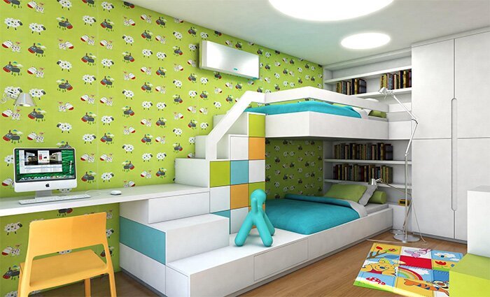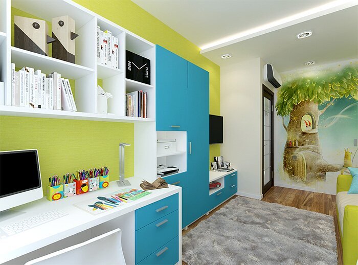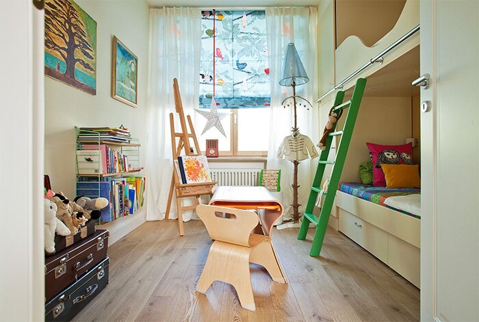Пренебрегать зонированием не стоит. Этот прием не просто играет декоративную роль и помогает создать интересный интерьер, но и весьма полезен для развития ребенка. Считается, что ему удастся лучше концентрироваться на учебе, если рядом не будет находиться кровать или коллекция любимых игрушек. И наоборот, он заснет гораздо быстрее, если его не будет отвлекать монитор компьютера или спортивный тренажер.