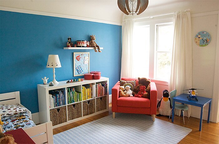 С помощью цвета можно отлично разделить комнату на разные зоны. Например, пастельными тонами оформить зону для сна, яркими и жизнерадостными — игровую зону, а каким-нибудь нейтральным, но динамичным цветом – место для учебы: чтобы ребенок не слишком отвлекался и мог сконцентрироваться.